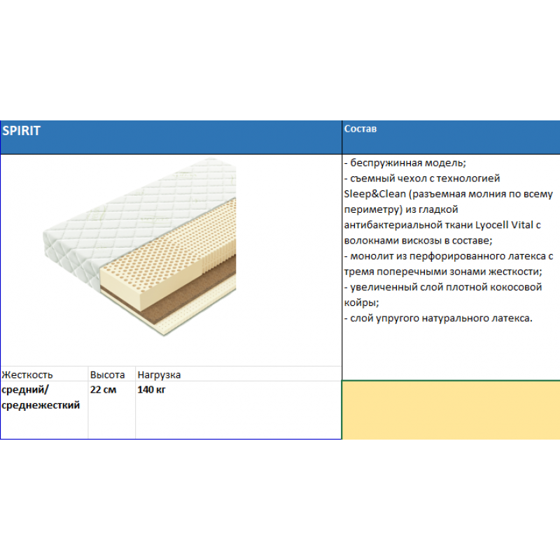 - съемный чехол с технологией Sleep&Clean (разъемная молния по всему периметру) из гладкой антибактериальной ткани Lyocell Vital с волокнами вискозы в составе;