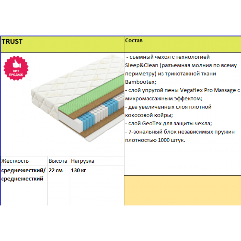 - слой упругой пены Vegaflex Pro Massage с микромассажным эффектом;